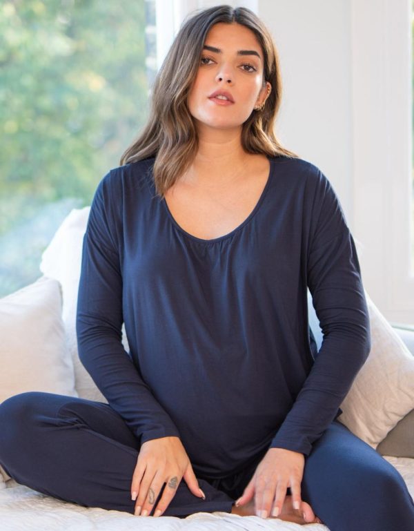Ultra-soft & easy to wear, our Lounge Maternity & Nursing Pajamas are designed to help you relax and unwind before, during & after pregnancy. Made in the softest bamboo jersey, these stylish maternity PJs drape beautifully and feel fantastic against your skin. The easy-fit bottoms feature a flexible waistband, which you can wear over the bump throughout pregnancy and then fold down for a lower rise fit afterwards. The top features a draped front panel, which pulls easily aside for nursing – perfect for those inevitable night-time feeds.