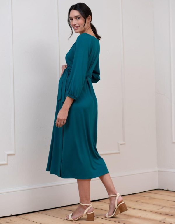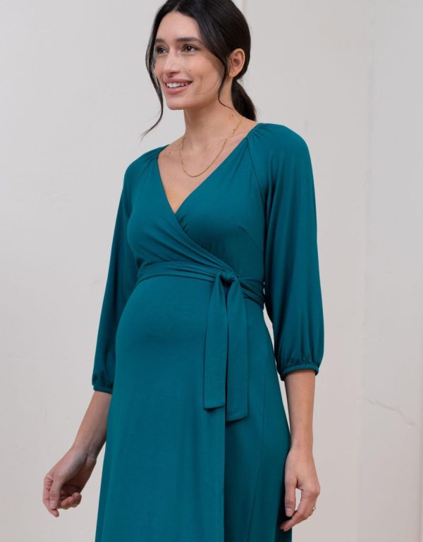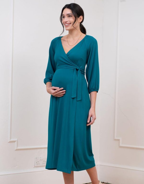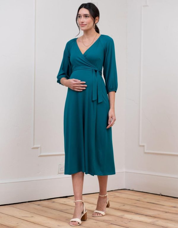 There’s nothing like a simple yet elegant wrap dress to add a little elevated style to your new mama wardrobe. And this one – made in super-soft viscose jersey and pretty blouson sleeves (just right if you prefer a little arm coverage) – is an ideal choice: stylish yet comfortable with a flexible fit for a form-hugging shape whatever stage of pregnancy you’re at. Finished in a vibrant peacock colorway, dress down with your favorite flat sandals or up with a low block heel and clutch for event days and parties.