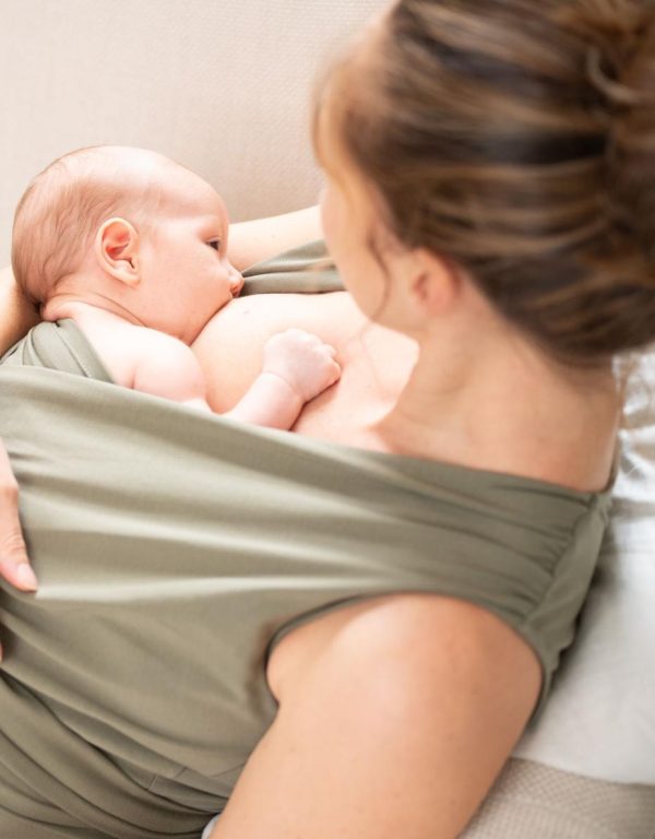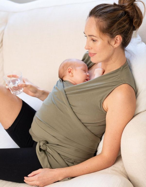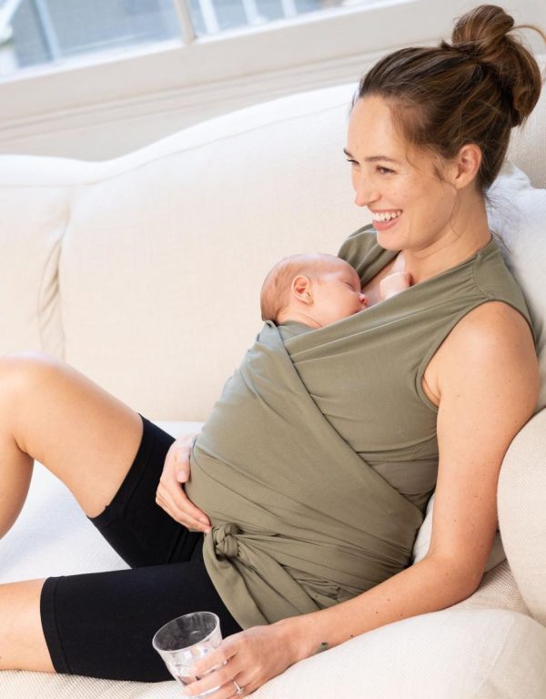 Hold your little one close in our Khaki Cotton Skin to Skin Top, and enjoy all the benefits of skin to skin, hands free. Made in the very softest cotton with the perfect level of stretch, this essential top is designed to be gentle on both mum & baby’s skin. The structured fabric provides great support and the wrap ties secure baby in the optimal position, allowing you to enjoy hands-free cuddle time while sitting or reclining. Stylish & versatile, this clever top can also be worn as a regular wrap nursing top, providing easy access for breastfeeding.