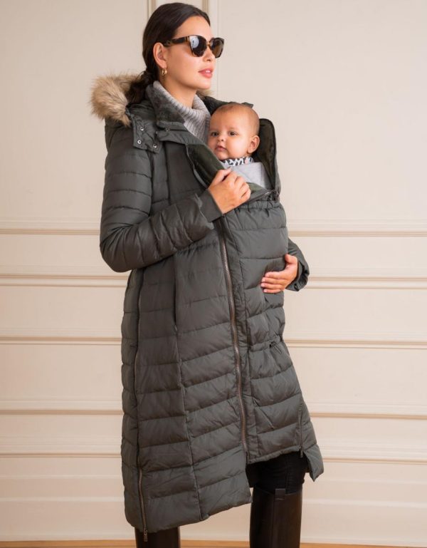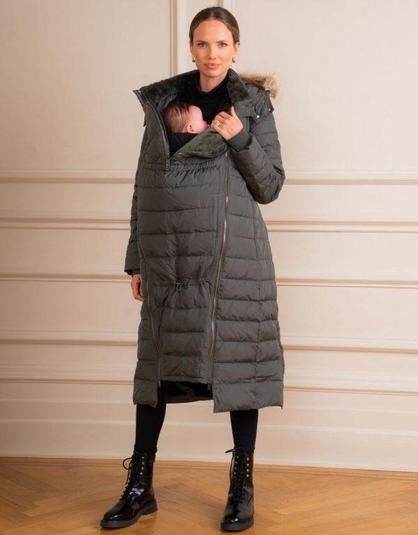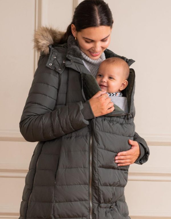 Cozy up in one of our warmest styles ever! The Long Down Khaki 3 in 1 Maternity & Babywearing Coat is designed to combat the most extreme winter weather for bump, babywearing & beyond. Filled with RDS certified natural down & fully lined in soft velour, it’s guaranteed to keep you & baby toasty warm.