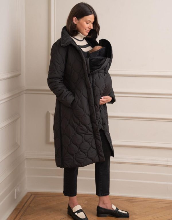 Stylish & ultra-flexible, our Quilted 3 in 1 Maternity & Babywearing Coat is designed with your whole motherhood journey in mind. Featuring a stylish quilted design with cozy recycled padding, this coat is warm & shower resistant. Clever zip-away panels at the sides extend the style for a flexible fit throughout your nine months. Then after baby arrives, simply zip on the detachable kangaroo panel at the front to fit over any standard baby carrier or sling. An optional self-tie belt allows you to cinch the waist for a flattering fit at every stage – from bump to babywearing & beyond.
